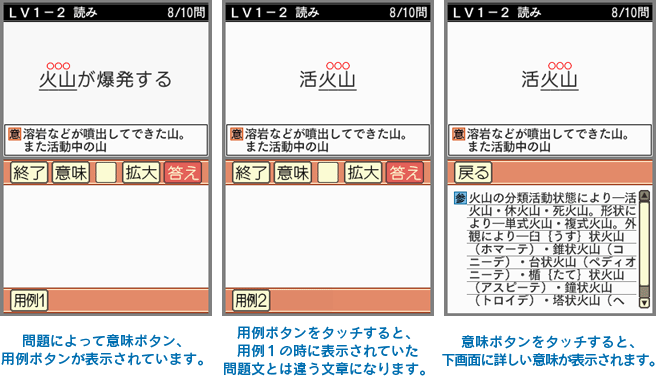 ここで出題された言葉にタッチすると「おさらい画面」に移ります。